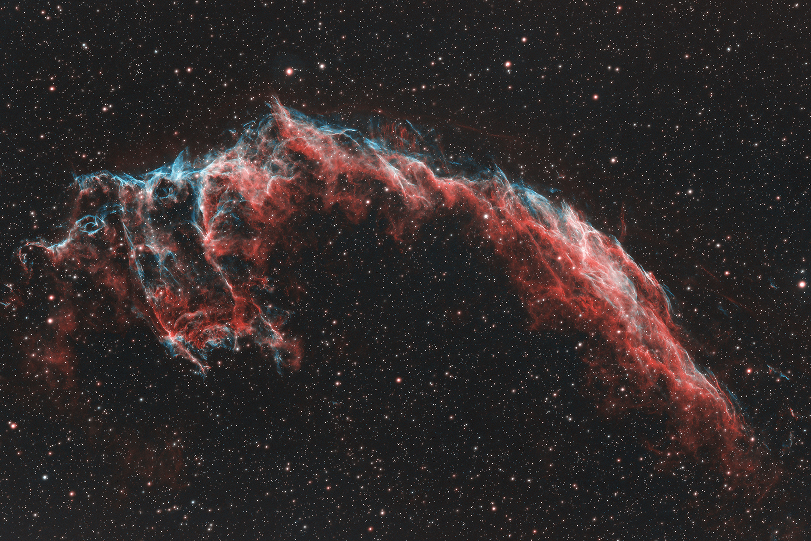 NGC6992 is strictly only the designation for right-hand part of the nebula in the image above, which was discovered by William Herschel in 1784. Other parts of the nebula have their own designations, including NGC6995 for the left-hand area of the above image.
